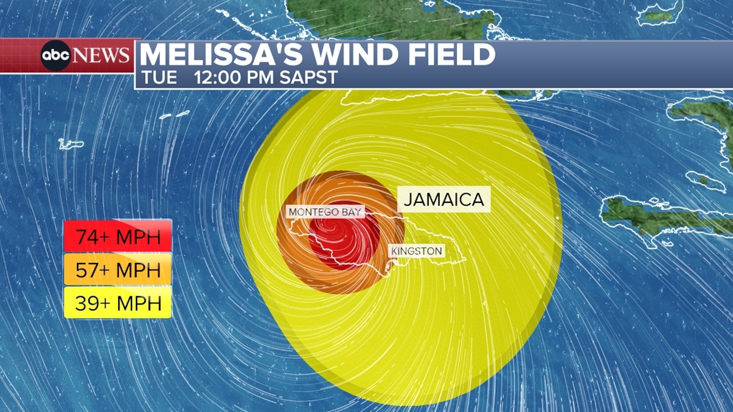Melissa will likely remain at Category 5 strength by the time it makes landfall in Jamaica midday or early afternoon Tuesday. Melissa is set to bring catastrophic winds, rain, flooding and storm surge to Jamaica, where residents and tourists are sheltering in place.