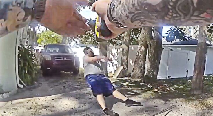 The body camera video continues to show deputies surrounding the suspect and ordering him to get on the ground. The suspect, identified as Trevor Nieves-Gonzalez, is then seen spitting at one of the deputy’s, prompting him to utilize a taser.