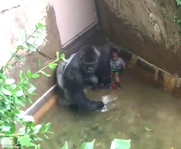 Eyewitness video initially shows Harambe standing over the boy and holding his hand. It looks as though he is genuinely trying to protect and possibly soothe him. But the same video shows the 450-pound silver back grabbing the child by the leg and dragging him rather violently through a water-filled moat. Despite this rough treatment, the boy seems to have walked away from the incident with few injuries.