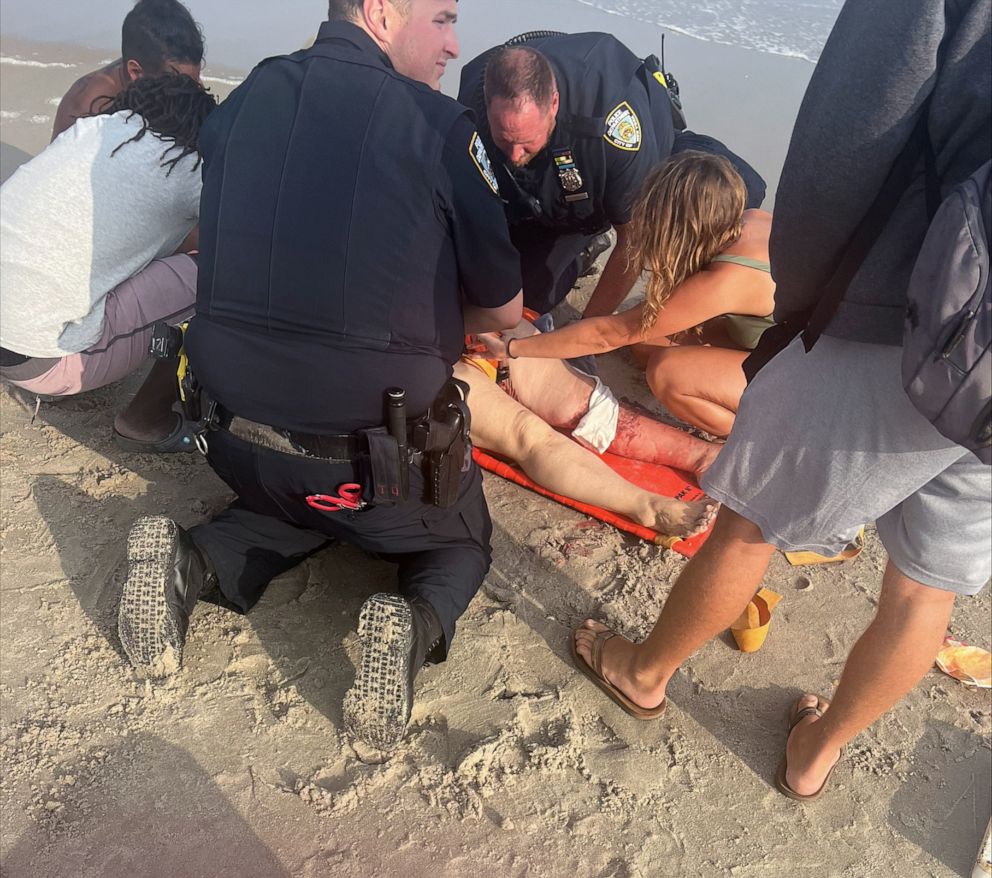 Lifeguards rescued her from the water and officers applied a tourniquet, police said.