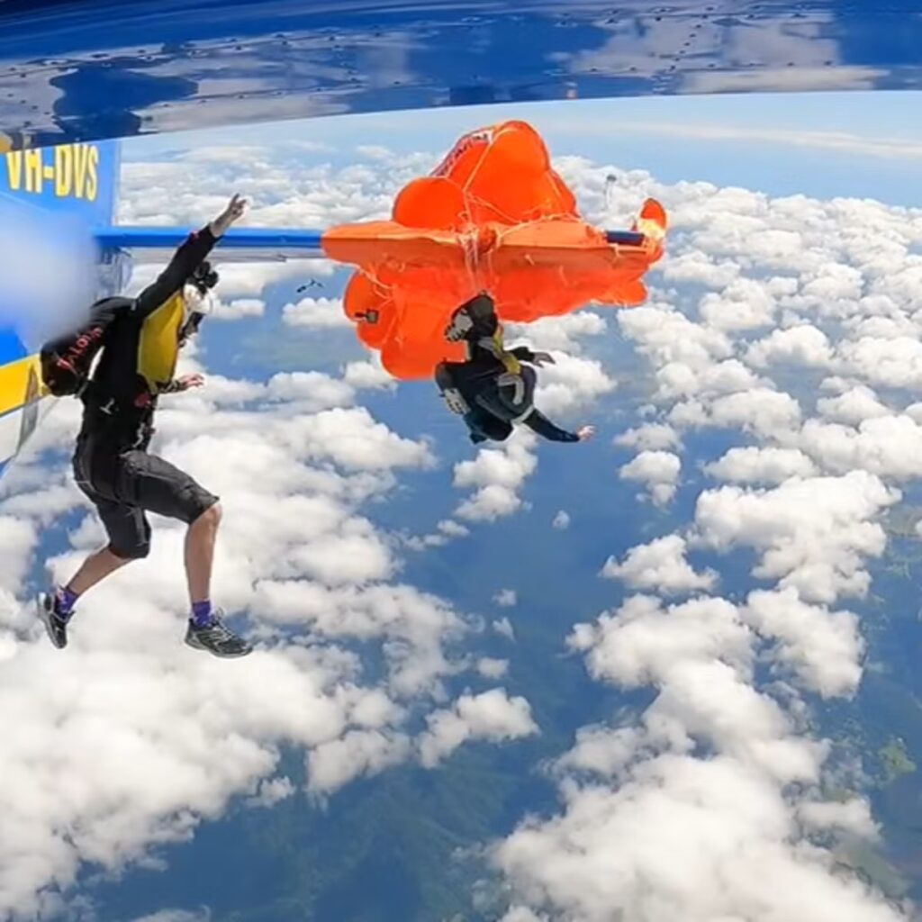 A video released by the Australian Transport Safety Bureau showed the participant’s reserve parachute being activated after its handle snagged the wing flap of the plane.